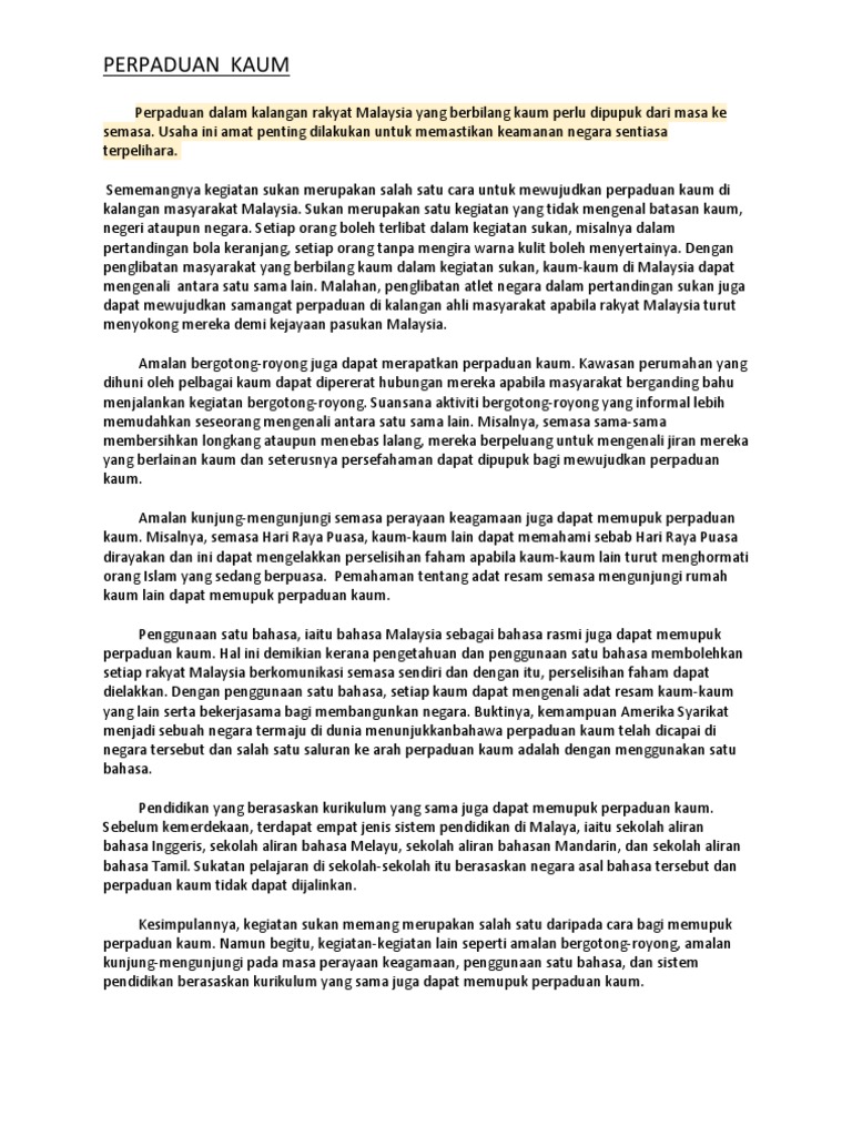 Rumusan Usaha Untuk Memupuk Perpaduan Dalam Kalangan Pelajar Dan Cabaran Yang Dihadapi Bahasa Melayu Spm Kertas 2