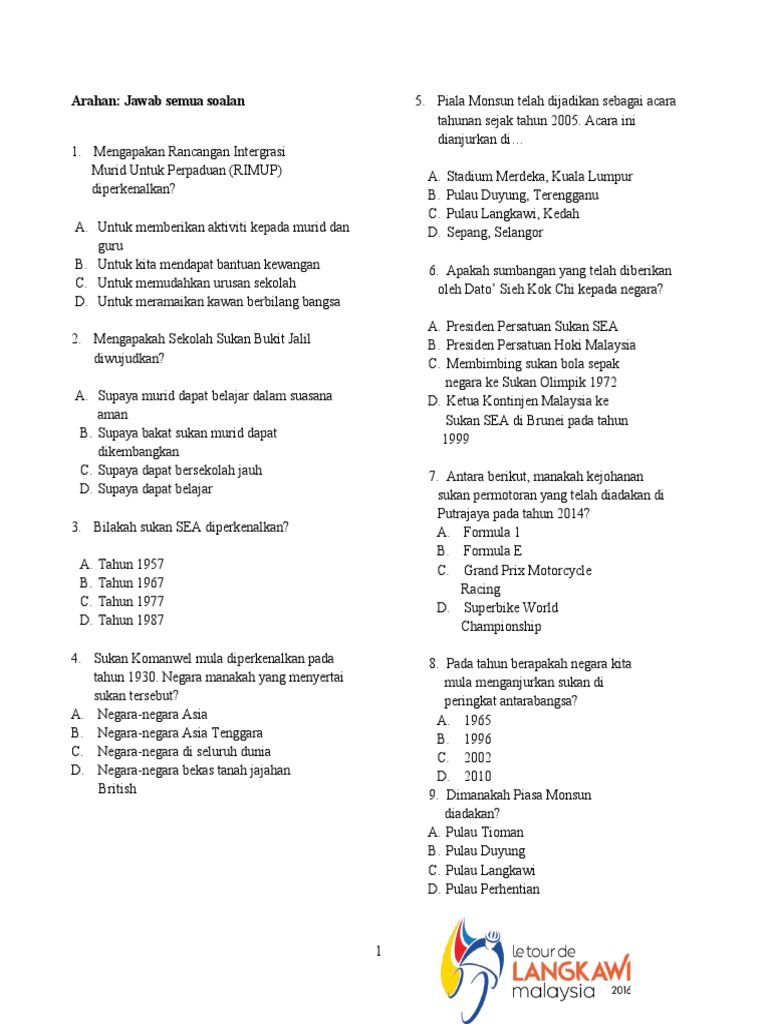 Sukan sea diperkenalkan pada tahun. Supaya dapat bersekolah jauh. Pada tahun bilakah pestabola merdeka telah diadakan. Sukan komanwel mula diperkenalkan pada tahun 1930.
