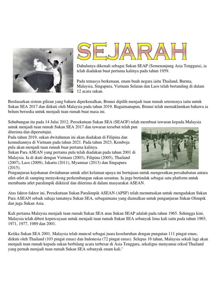 Supaya murid dapat belajar dalam suasana aman. Bilakah sukan sea diperkenalkan.