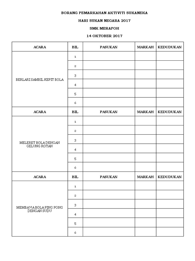 Contoh aktiviti sukaneka. Pelancaran program lain 9. Anda boleh rujuk gambar gambar di bawah beberapa aktiviti yang telah dicadangkan. Kertas kerja hari keluarga dan sukaneka anjuran persatuan penduduk dan madrasah al ittihadiyah taman maim bukit rumbia alor gajah melaka 1 0 pengenalan 1 1 hari keluarga merupakan satu hari yang dapat dilaksanakan di antara pemimpin masyarakat dan juga masyarakat setempat.