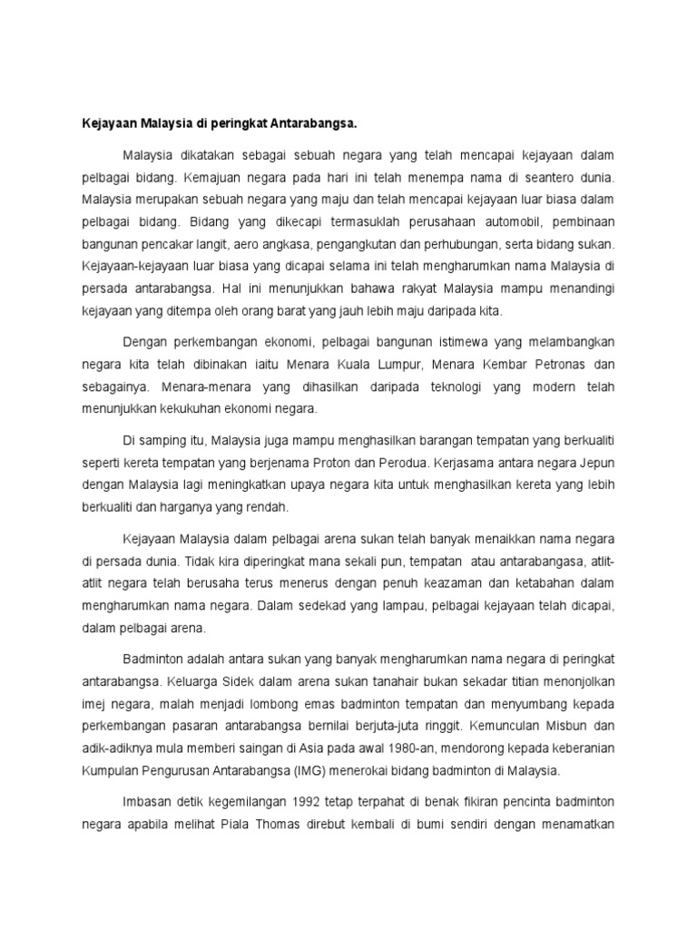 Kejayaan Malaysia Di Peringkat Antarabangsa Kertas 3 2