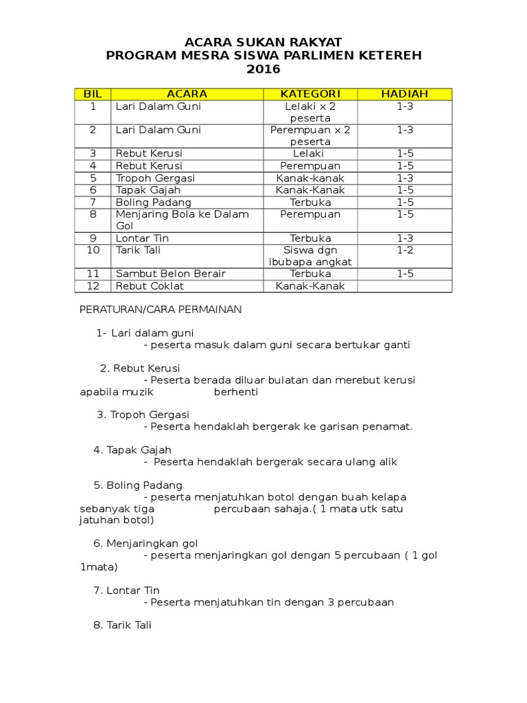 Maklumlah nak dapat hadiah. Apakah jenis acara sukaneka kanak kanak yang perlu diadakan di sekolah. Terdapat banyak jenis acara sukaneka yang boleh dilakukan dalam kalangan kanak kanak.