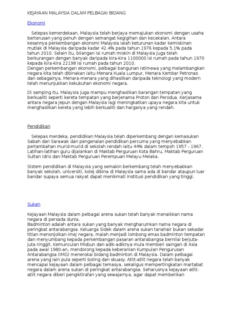 Kejayaan Malaysia Dalam Pelbagai Bidang